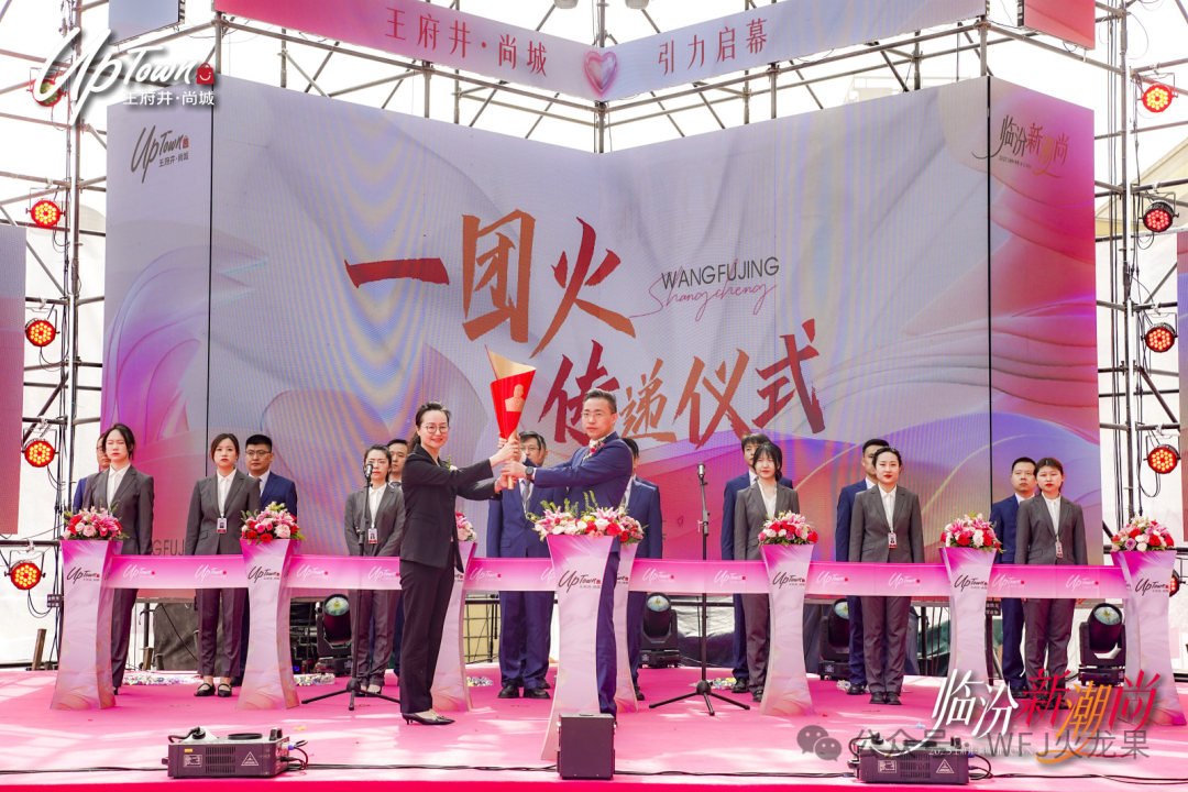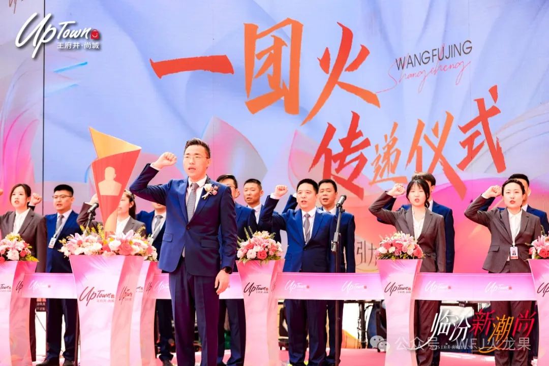 最激动人心的“一团火”火炬传递仪式开始了!随着熟悉的“你是一团火 我是一团火”旋律响起,董顼将这把传遍大江南北的一团火火炬,郑重地交到王府井・尚城总经理杨其勇手中。