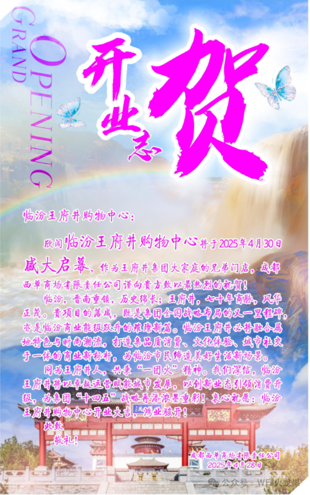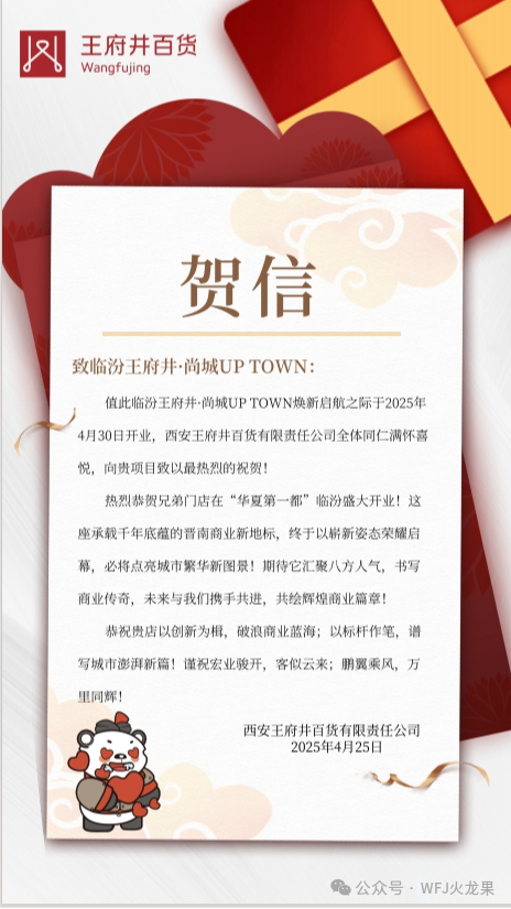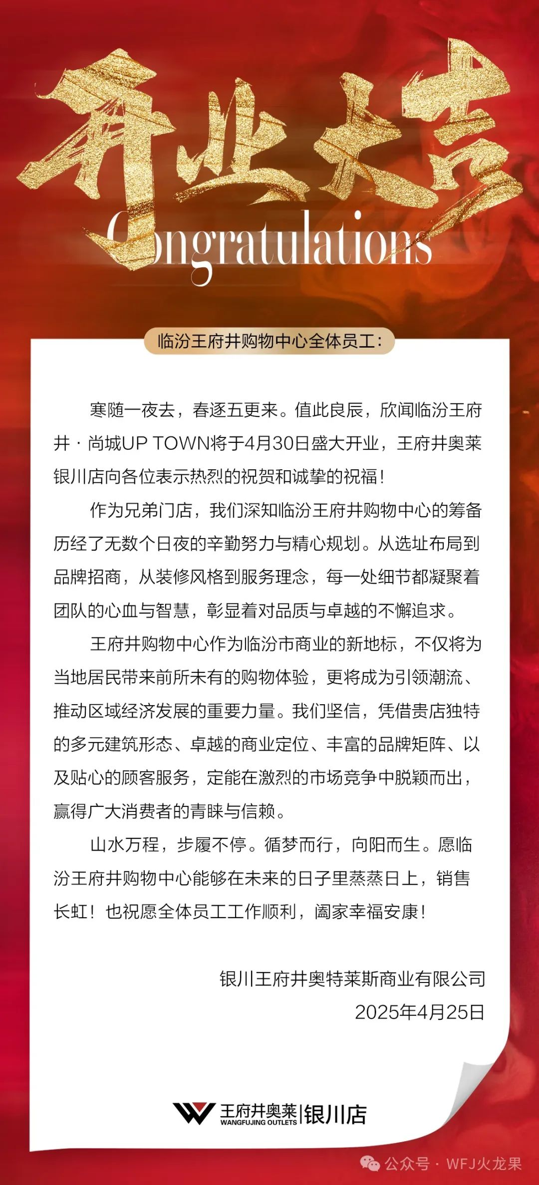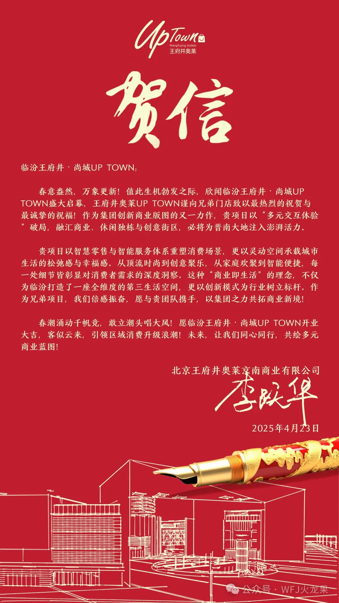 最后,再次祝愿临汾王府井・尚城Up Town开业大吉,骏业日新,生意兴隆!