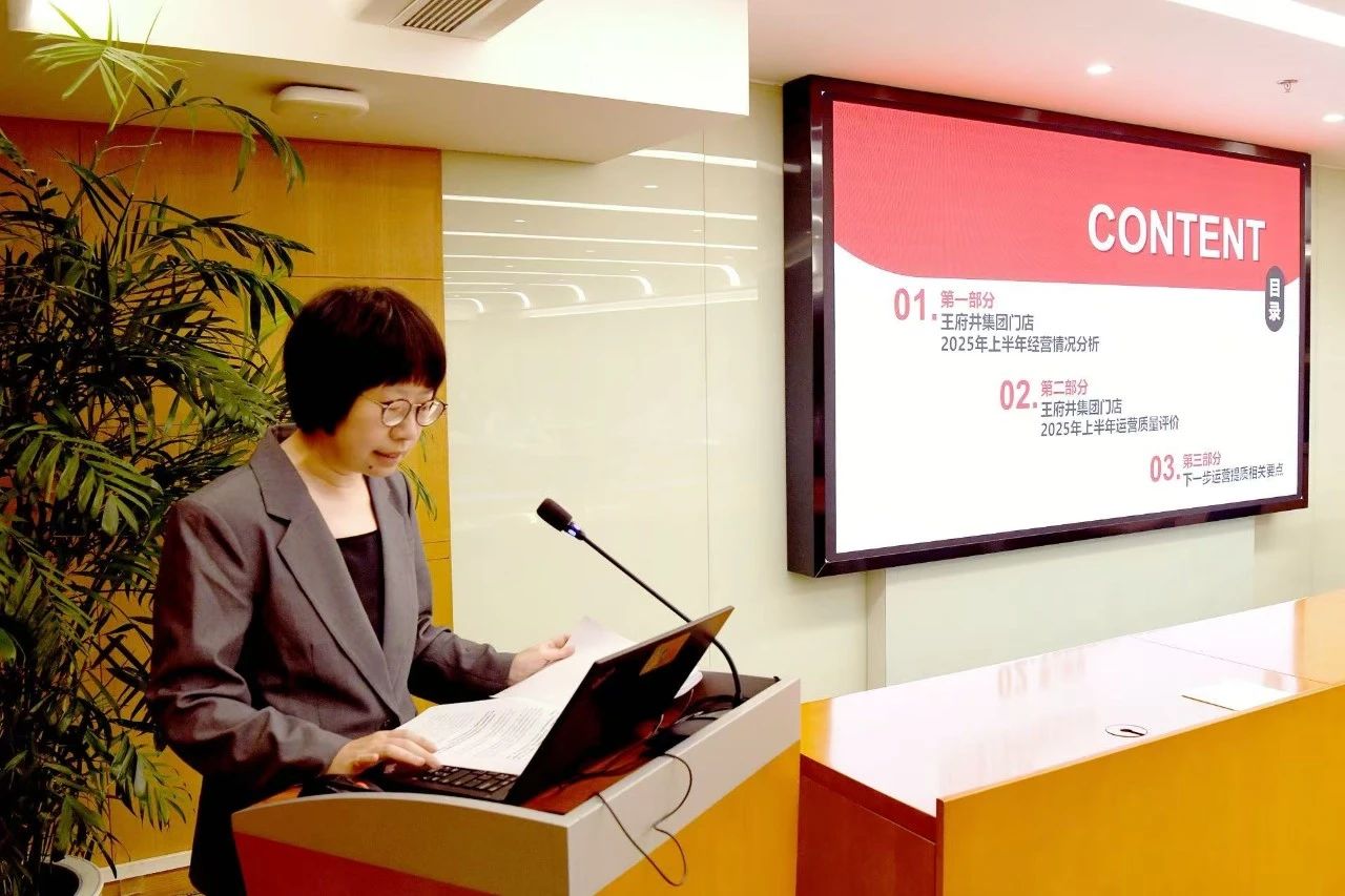 集团业务运营中心副总经理作《王府井集团门店2025年上半年经营分析》报告,系统总结了集团门店上半年主要指标完成情况、专项奖励完成情况和指标完成特点。
