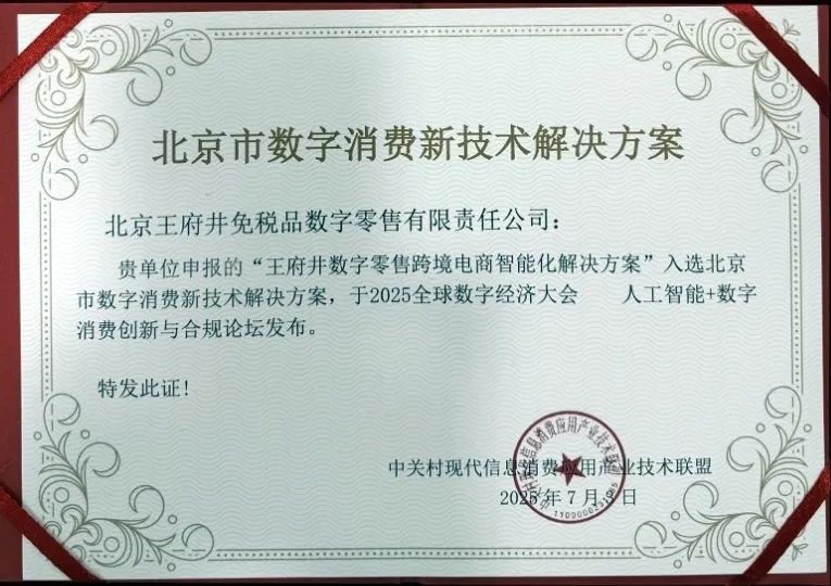 ■ “王府井数字零售跨境电商智能化解决方案”入选“北京市数字消费新技术解决方案”