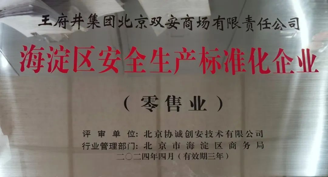■ 双安商场被授予“海淀区安全生产标准化企业”,获评“2024年零诉求商圈奖”