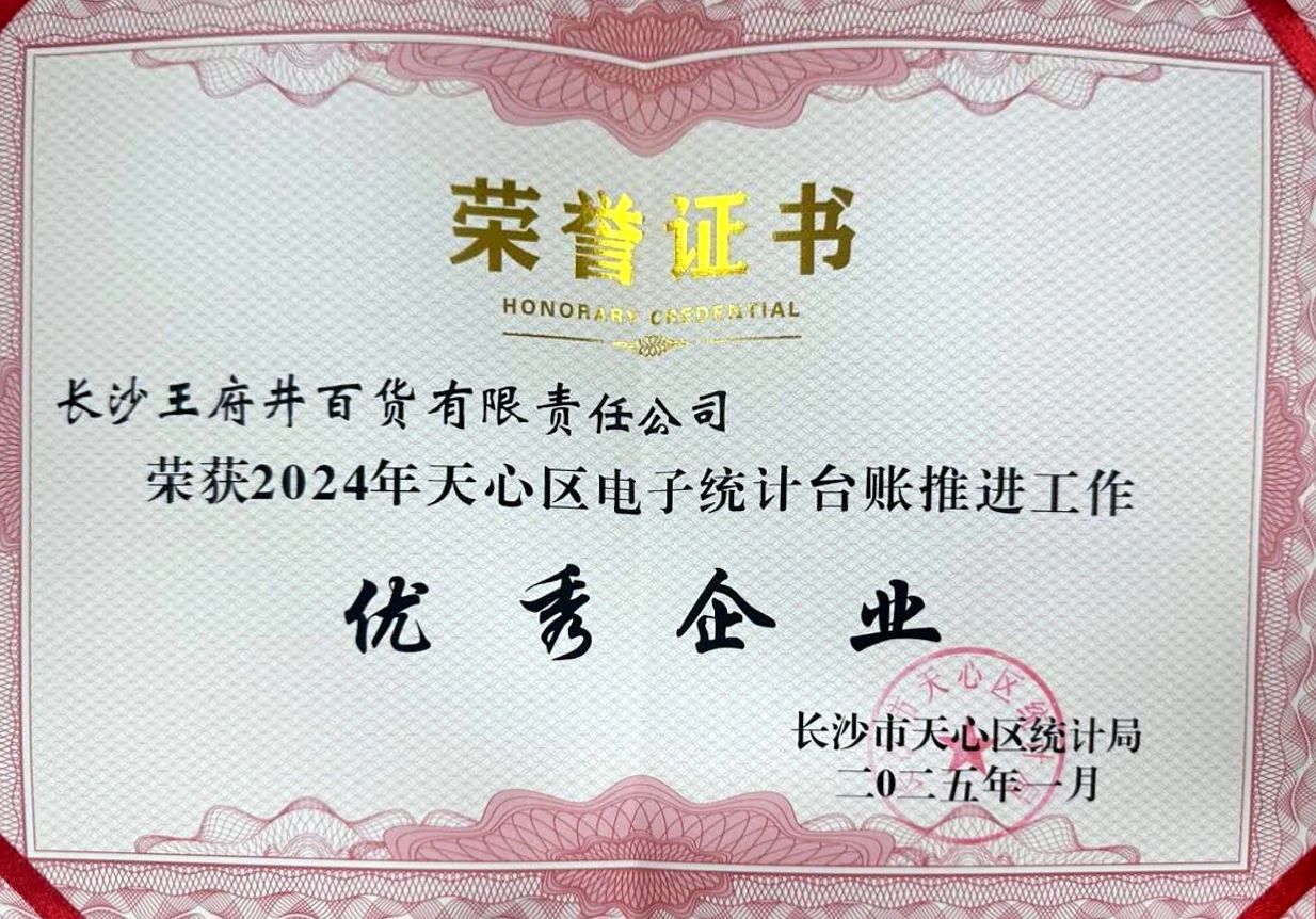 ■ 长沙王府井被授予“2024年天心区电子统计台账推进工作优秀企业”