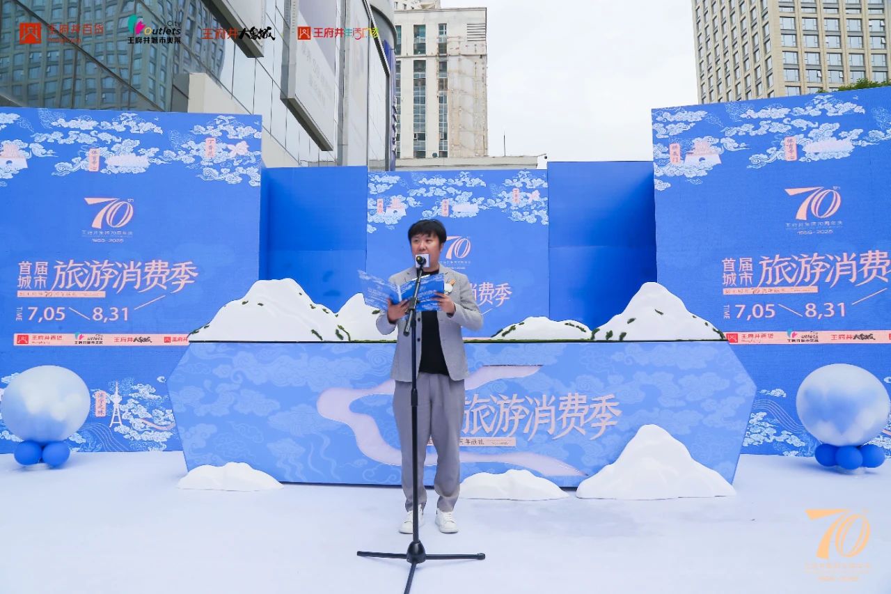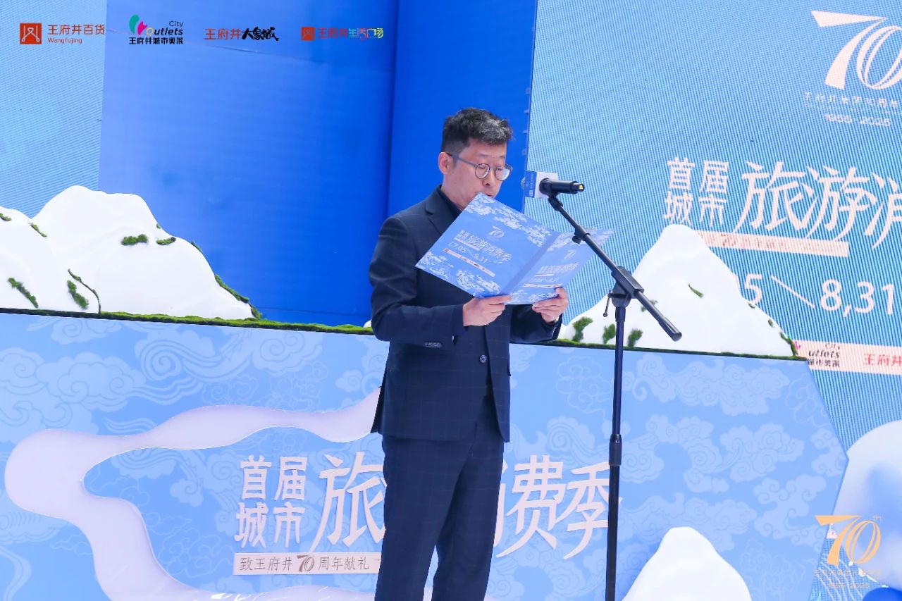王府井集团北区、中区负责人陈宝骥向来宾致欢迎辞,表示在西宁市商务局、西宁市文化旅游广电局、城中区人民政府的大力推动下,“城市旅游消费季”活动得以顺利开展。活动将通过政企农协同、直播电商等模式唤起消费潜力,激活暑期消费市场,推动青海特产品牌化升级。他同时回顾王府井集团七十年发展历程以及西宁王府井四家门店基本情况,期望消费季活动能为提振西宁消费市场注入新动能。