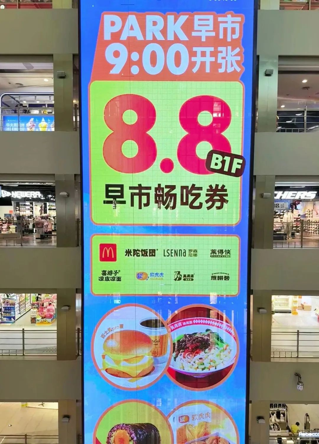 活动期间,商场负一楼早市9点正式开张,联动麦当劳、罗森尼娜等8家餐饮品牌推出8.8元超值早市套餐,为周边居民、写字楼打工人等群体提供健康美味早餐。每日9:00-10:00时间段,顾客可自带杯具,在一只酸奶牛、爷爷不泡茶商户免费领取冰块,给自己降降温。联动长沙本地直播带货博主开展直播探店,进行88元盛夏券包、工作日套餐餐饮团购推流、宣发,抖音渠道共成交金额9W+。