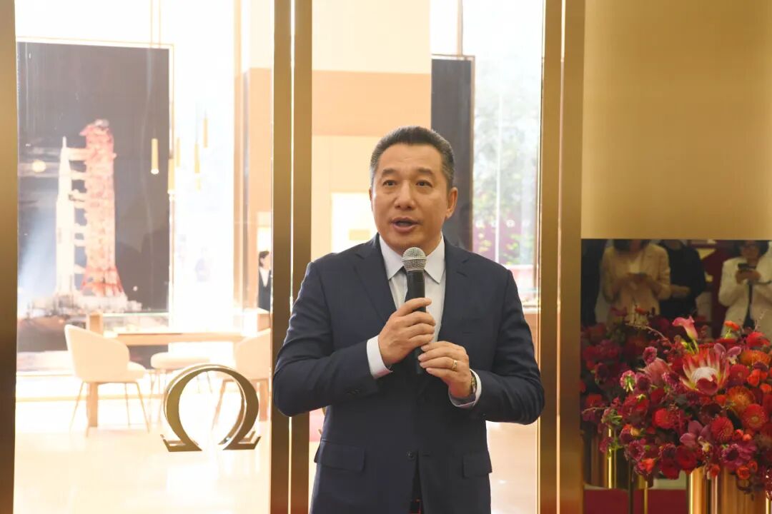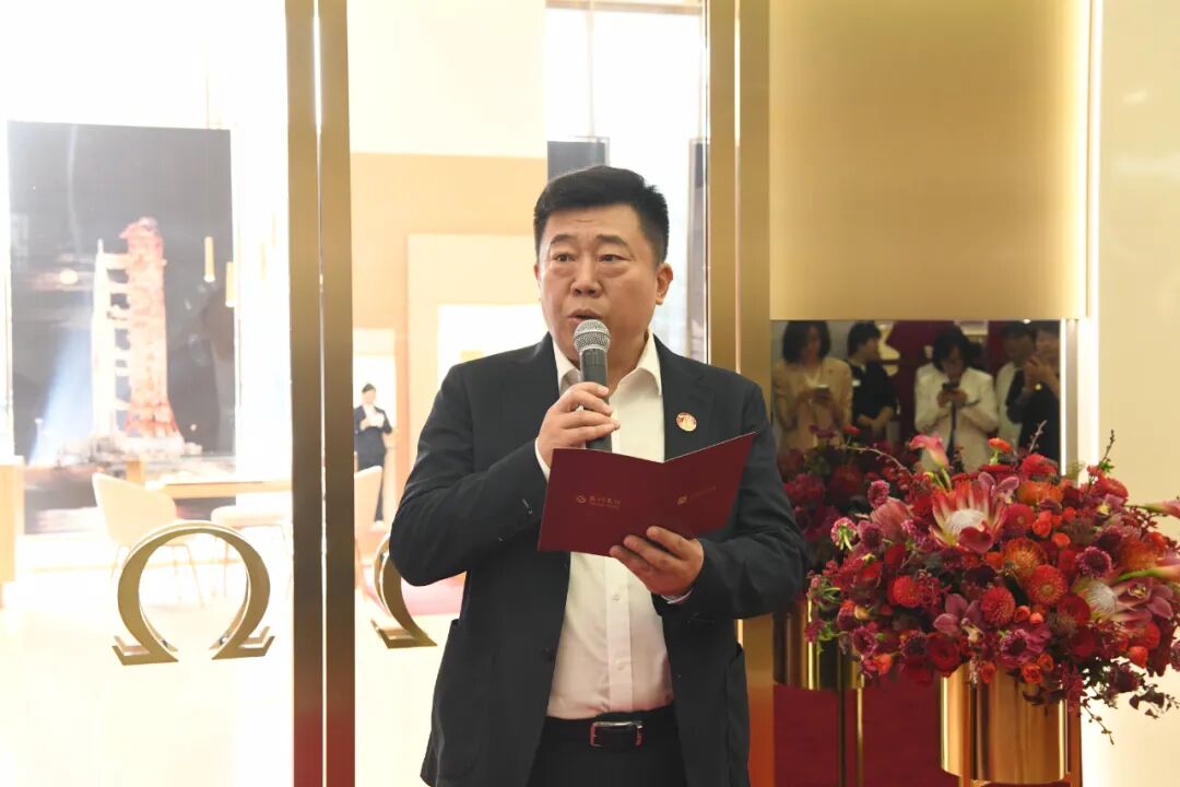 王府井集团总裁助理、百货大楼总经理张林登台致辞,他说:欧米茄品牌自入驻百货大楼以来,在二十余年的时光里,始终与百货大楼“匠心服务,传承经典”的理念深度契合,共同为消费者缔造了无数值得珍藏的时光记忆。今天揭幕的金色宇航员主题店,彰显了欧米茄品牌永不停歇的探索基因,这与王府井集团“打造中国商业新标杆”的愿景不谋而合。我们始终相信,真正的经典高贵不在于价格标签,而在于为顾客创造超越期待的精神体验。回望来时路,感恩同行情,携手向未来,共启新篇章,希望以此次焕新亮相为起点,共同谱写“时间见证永恒”的新传奇。