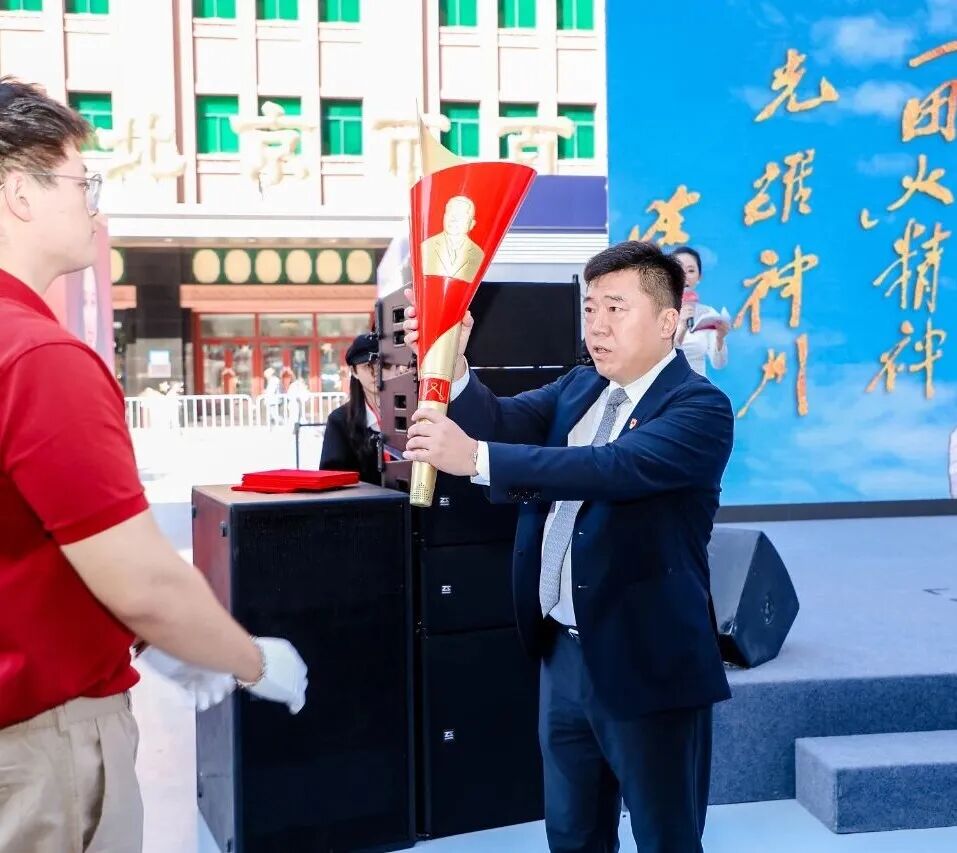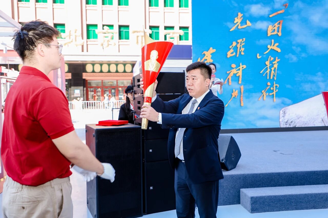 仪式中最具温度的篇章,当属“一团火”火炬传递环节——象征着爱心、匠心、初心与雄心的“鎏光”火炬,从北京出发跨越数十座城市,最终回到庆典现场。王府井集团总裁助理,百货大楼党委书记、总经理张林从火炬手手中接过火炬,放入展台中央,正式完成此次火炬传递。