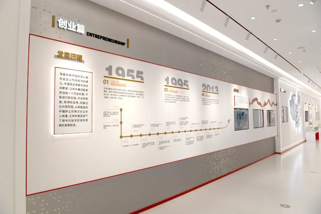 “王府井集团发展历程展”位于百货大楼一层。展厅生动再现集团七十载波澜壮阔的发展足迹,彰显一代代零售人矢志不渝的奋斗初心,展望新时代背景下的战略新章,持续弘扬“一团火”精神的时代光芒。这里珍藏着历史的闪光片段、重大的转型抉择与辉煌的业绩丰碑,以沉浸式体验与数字化语言,生动诠释了一家“第一店”成长为全国性、全业态零售领军者的非凡征程。