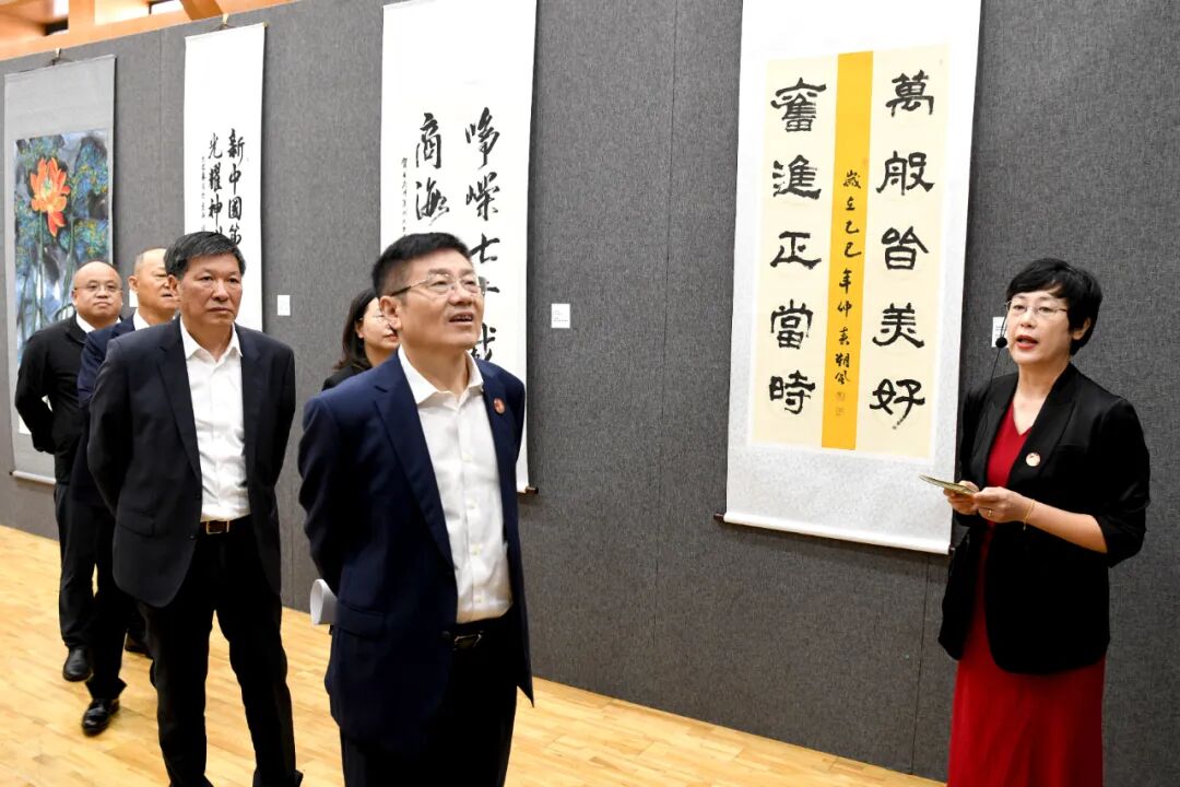 领导一行来到今日开展的“七秩风华茂,丹青绘新篇”王府井集团70周年职工书画手工艺作品展。展览分为书画作品区、现代美术区、手工作品区及老物件展区四大板块,共计243件优秀作品,集中展出了王府井员工的艺术才华与精神风貌。