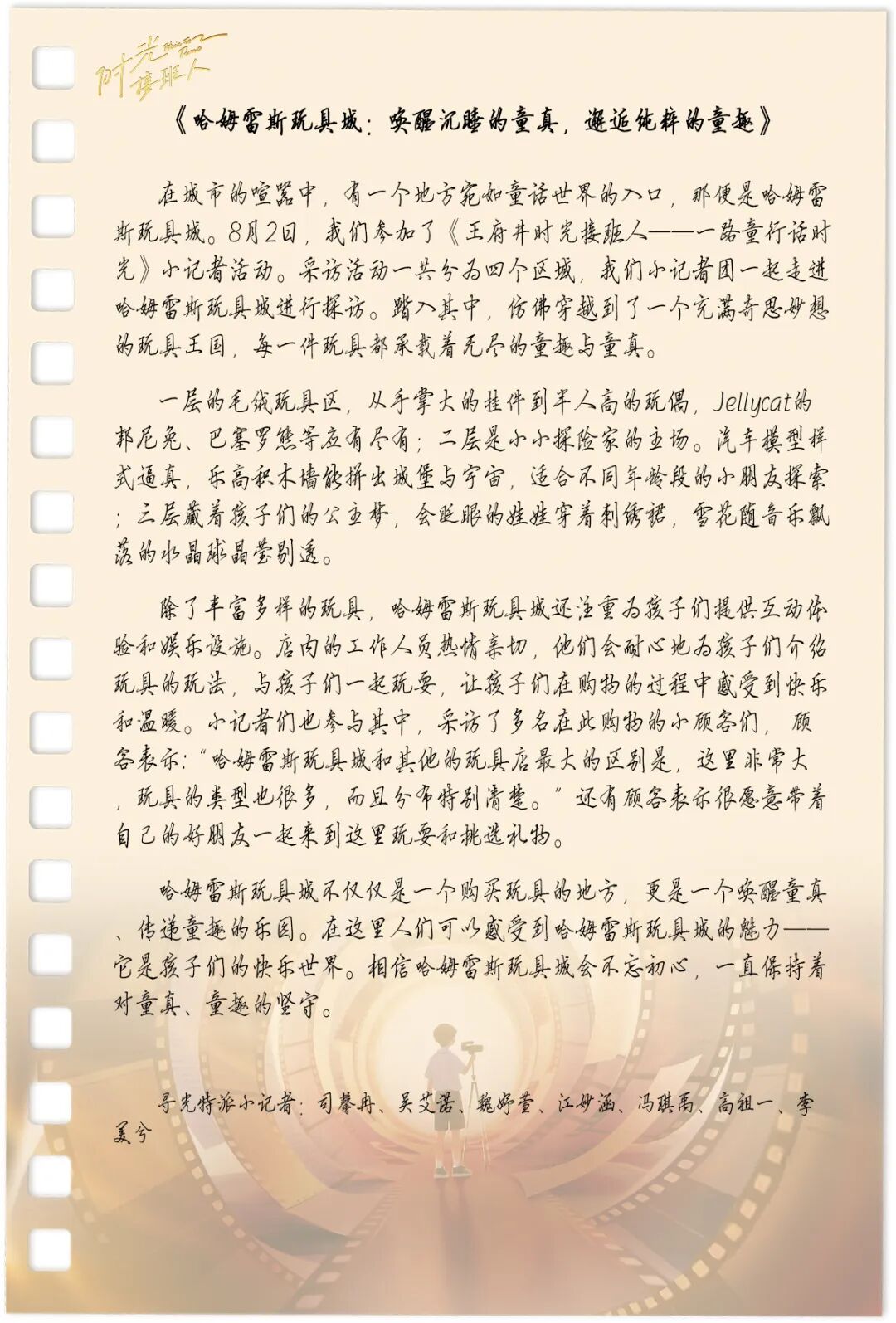 “时光接班人·一路童行话时光”活动,并非简单的商业探访,而是用少年能感知的方式,进行“记忆传递与未来对话”。小记者们既触摸到了张秉贵时代“把顾客当亲人”的服务温度,也捕捉到了当下商业“为生活造美好”的创新活力。当孩子们带着“商业不只是买卖”的认知走出门店时,“时光桥梁”已真正架起:老一代的商业初心有了年轻的倾听者,新一代的消费认知里也埋下了本土品牌的传承种子,而这正是王府井70周年庆典中“传承”最生动的落地。