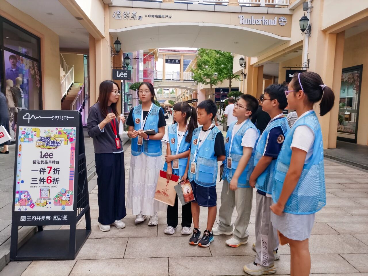 28名小记者们前往王府井奥莱·香江小镇,沉浸式体验“欧洲花园式精致奥莱2.0”所引领的奥莱消费潮流。小记者们分成4组,分别前往主街区、运动品牌街区、儿童游乐区、Town Art Space小镇艺术空间,完成“沉浸式体验”打卡任务并解锁采访。