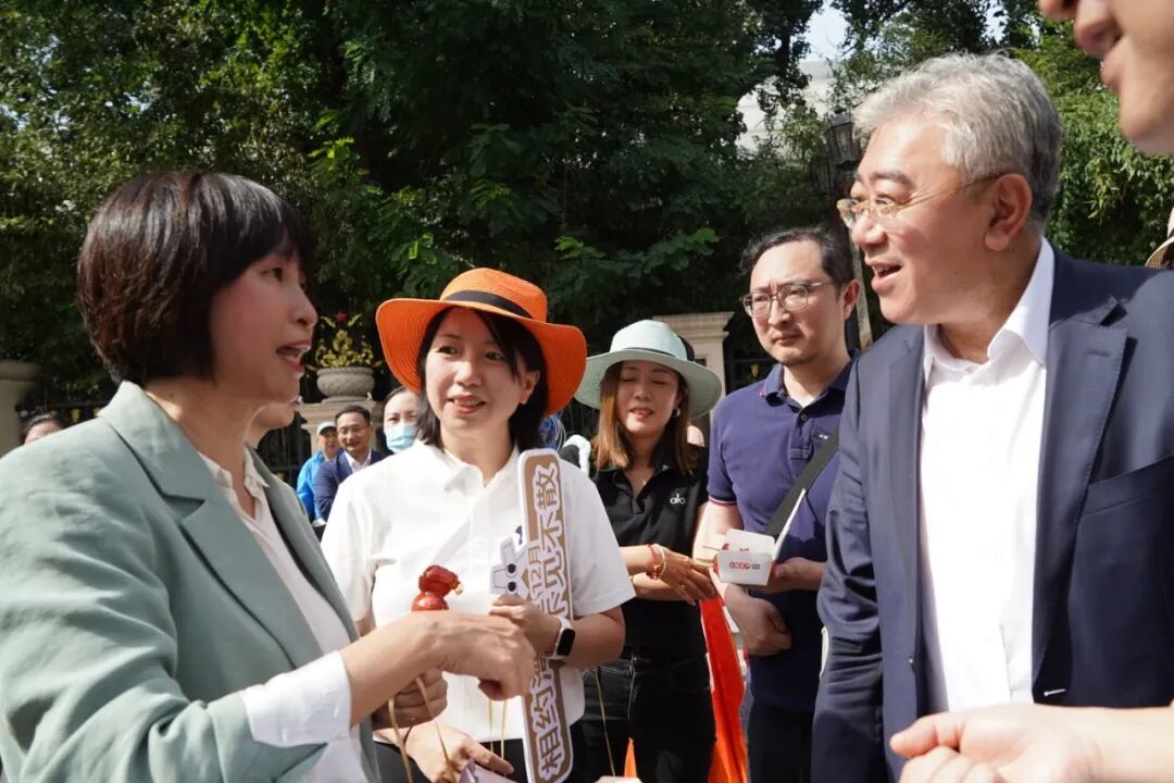 10月1日,2025国庆中秋“首旅精彩生活节”在北京展览馆盛大启幕,王府井集团携旗下哈姆雷斯、和平菓局糖葫芦以及湾里·王府井WellTown亮相,为广大消费者带来一场前所未有的新奇体验。首旅集团党委副书记、董事、总经理李云,王府井集团党委书记、副董事长、总裁尚喜平来到王府井展台参观指导。