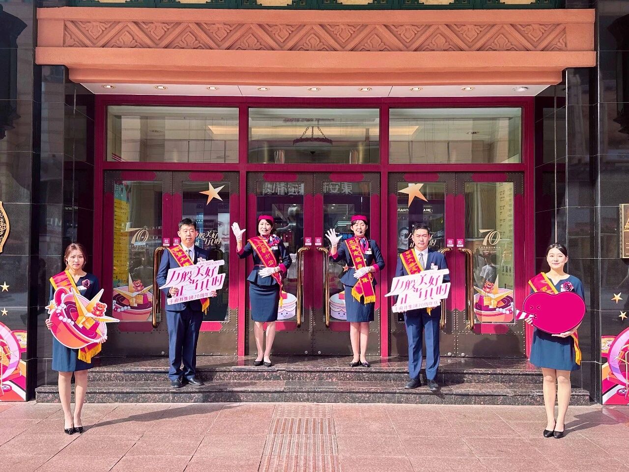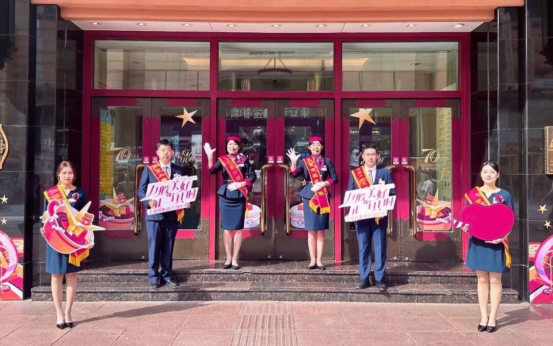温情迎宾开启节日序曲。10月1日清晨,百货大楼以一场温情迎宾活动拉开节日序幕。北京市劳动模范周微与“巾帼文明岗”带头人尚晶,带领服务团队,以普通话、英语穿插手语的“三语”形式亲切问候顾客,传递企业“一团火”服务精神。由多位“金牌店长”组成的迎宾团队为顾客送上贴有纪念标签的瓶装水,传递出百货大楼的暖心关怀与服务温度。