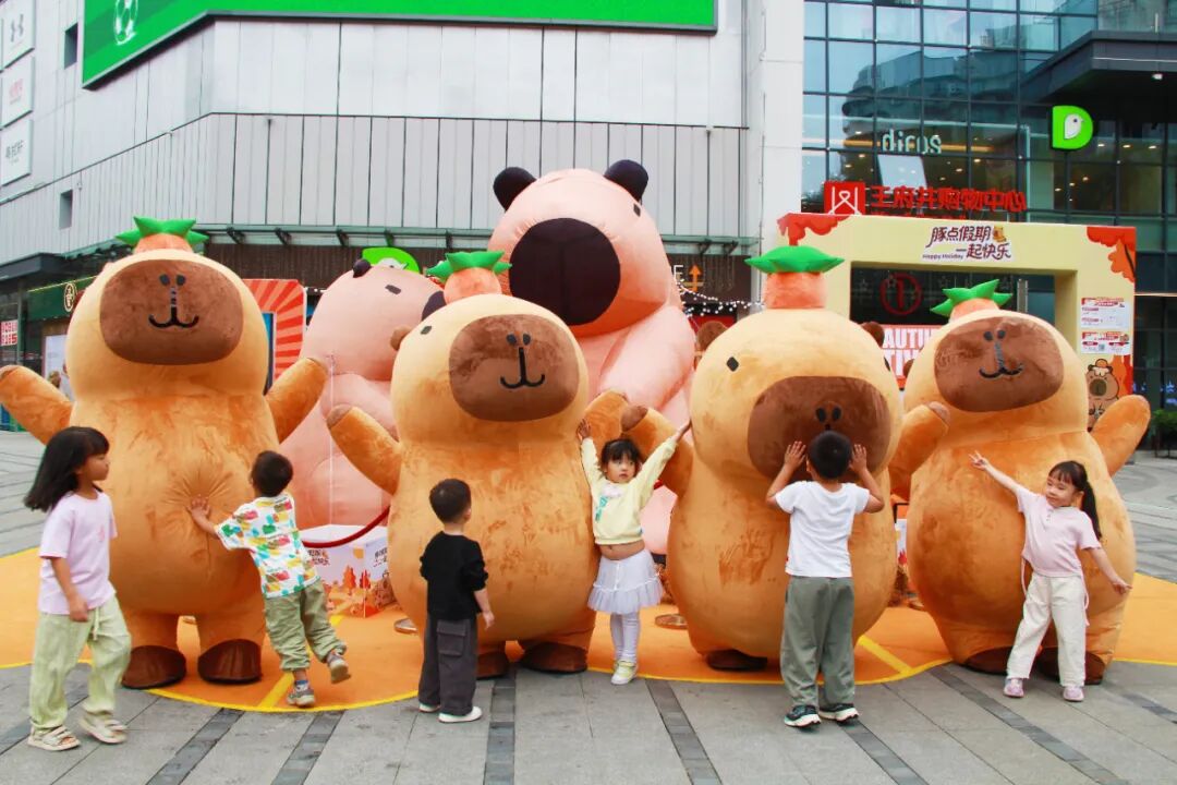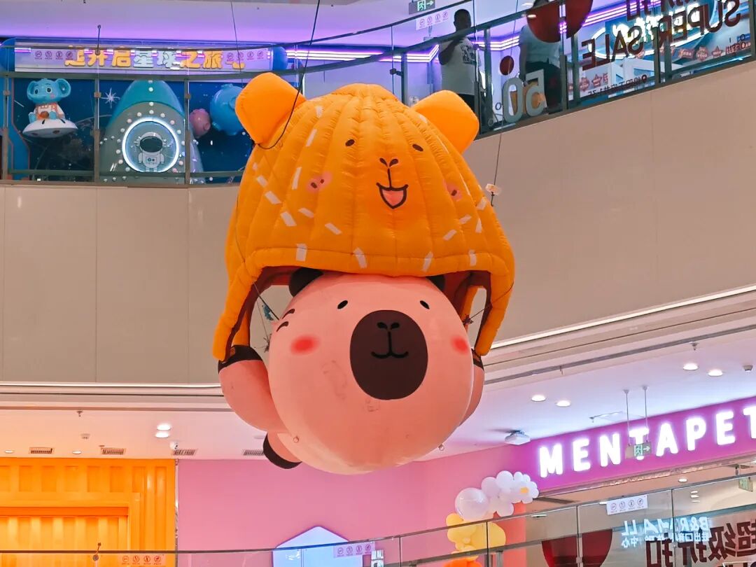 绵阳王府井购物中心开展了以水豚IP为核心的“卡皮巴拉美陈展”,各楼层不同位置分别放置了卡皮巴拉主题美陈场景,以契合当下年轻人渴望治愈、寻求放松的心理。同时,店内白天举办室内萌趣游园,夜晚举办户外星空观影,通过全时段、多维度的场景,有效吸引顾客打卡停留。