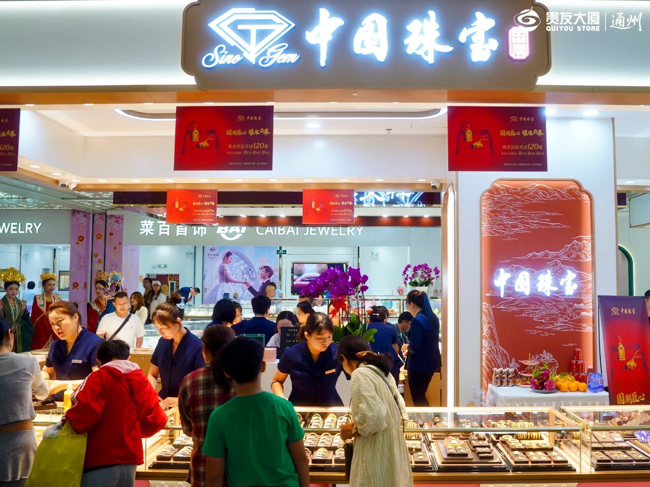 通州贵友大厦围绕集团庆核心期段重要节点,聚焦黄金珠宝品类,以消费赠礼提升客群到店率与品牌粘性。“中国珠宝”首店开业,举办舞狮、模特走秀庆典仪式,加磅黄金克减、消费满赠,强化品类优势;策划“限时金喜”,9大黄金品牌推出黄金克减与镶嵌折扣;开展“玉小兔钓萝卜”“入梦听月”中秋音乐会引客互动;搭建“欢迎来坐坐”放映厅营造露营式休息场景。